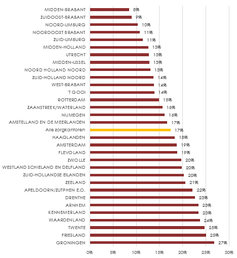 Figuur 5 Grote regionale verschillen in uitstroom naar Wlz-instelling, per zorgkantoorregio
